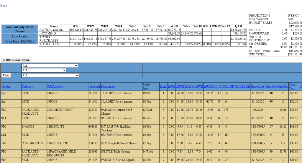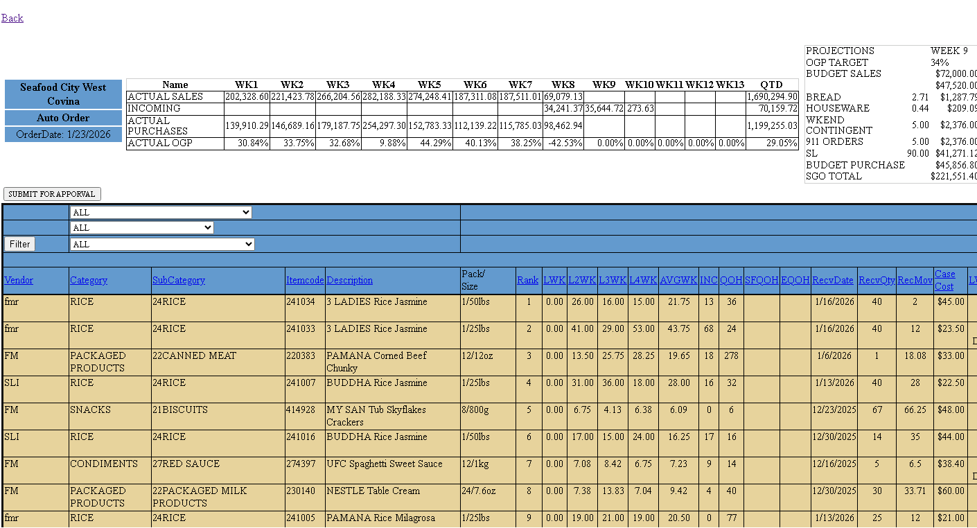 The purpose of this tool is assist the grocery manager in placing the weekly order.